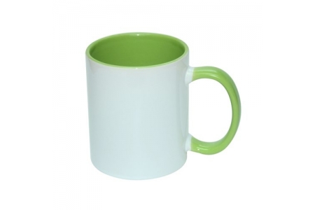KUBEK BIAŁY Z JASNOZIELONYM ŚRODKIEM I UCHEM (36 sztuk)