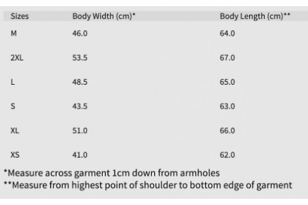 - od XS do 2XL